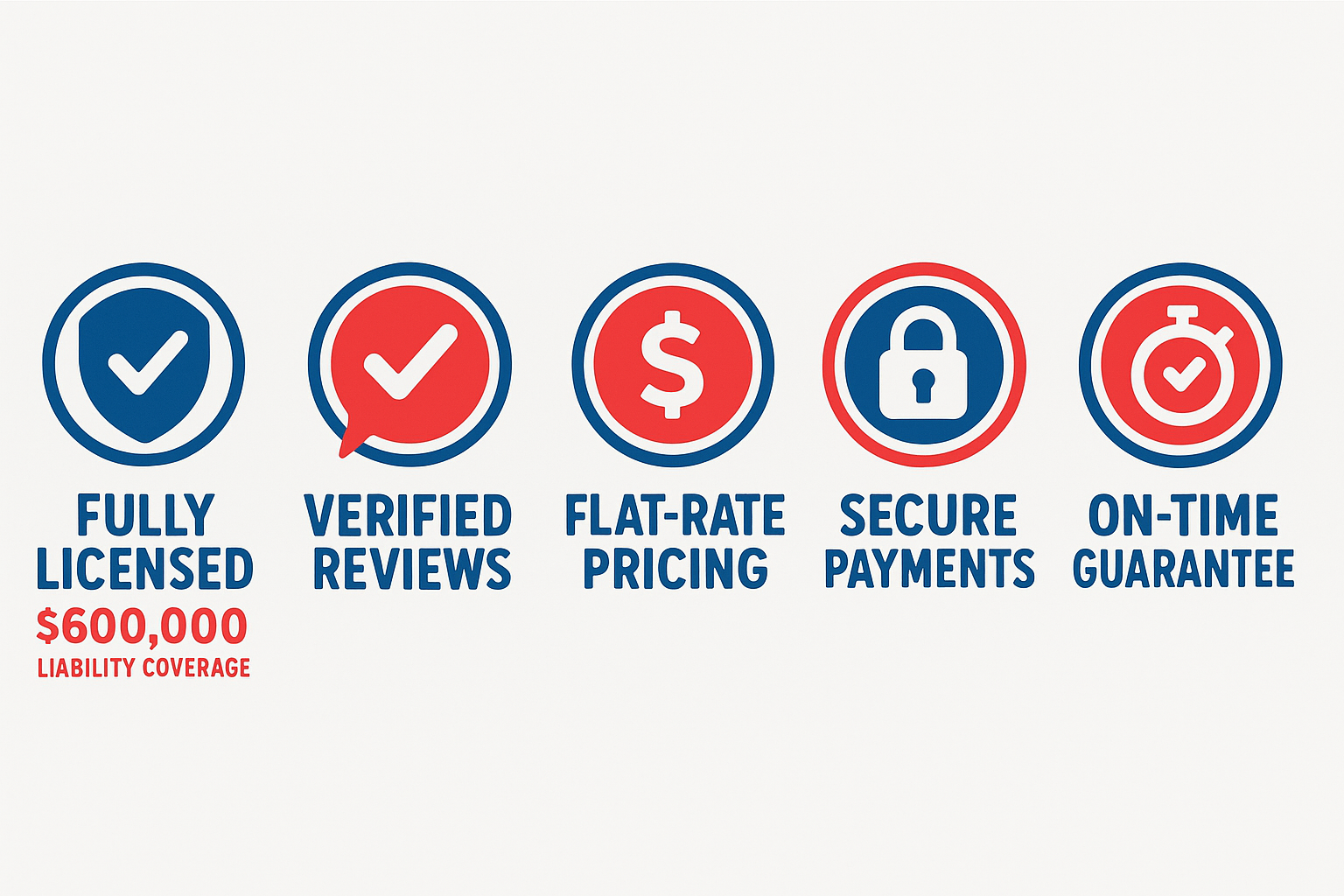 We’re proud to be a fully insured company with $600,000 in general liability coverage, so you can have complete confidence knowing your belongings are protected from start to finish.